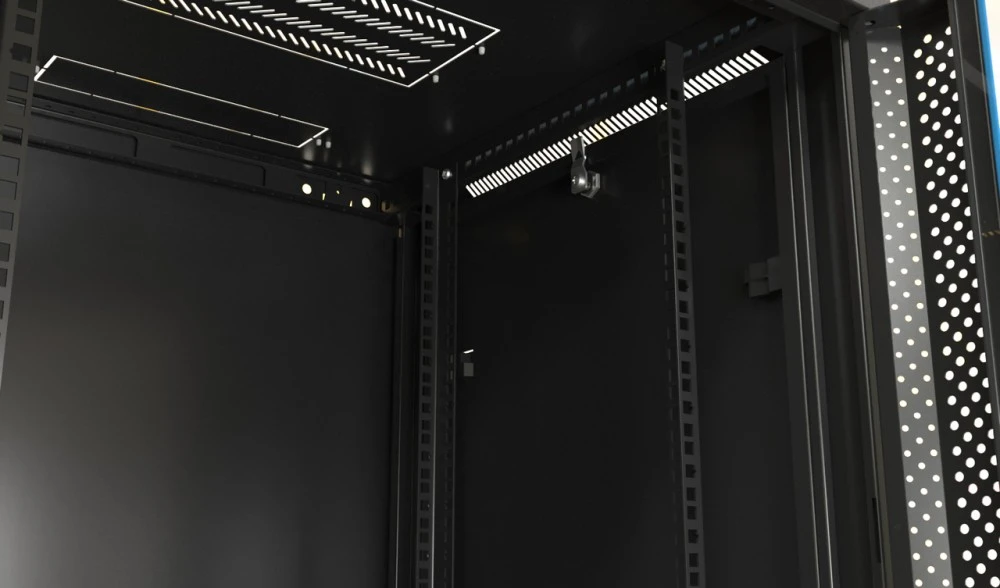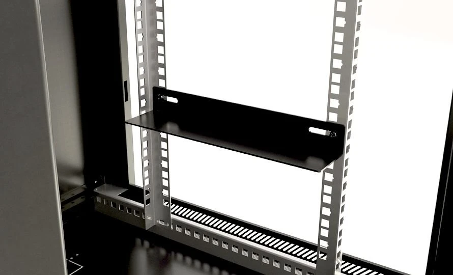 холоднокатаная сталь (SPCC), толщина стальных компонентов: рама каркаса, нижняя панель, задняя панель, передняя дверь, боковые панели, верхняя панель - 1,2 мм; горизонтальный монтажный профиль - 1,5 мм; 19" монтажный профиль - 2,0 мм