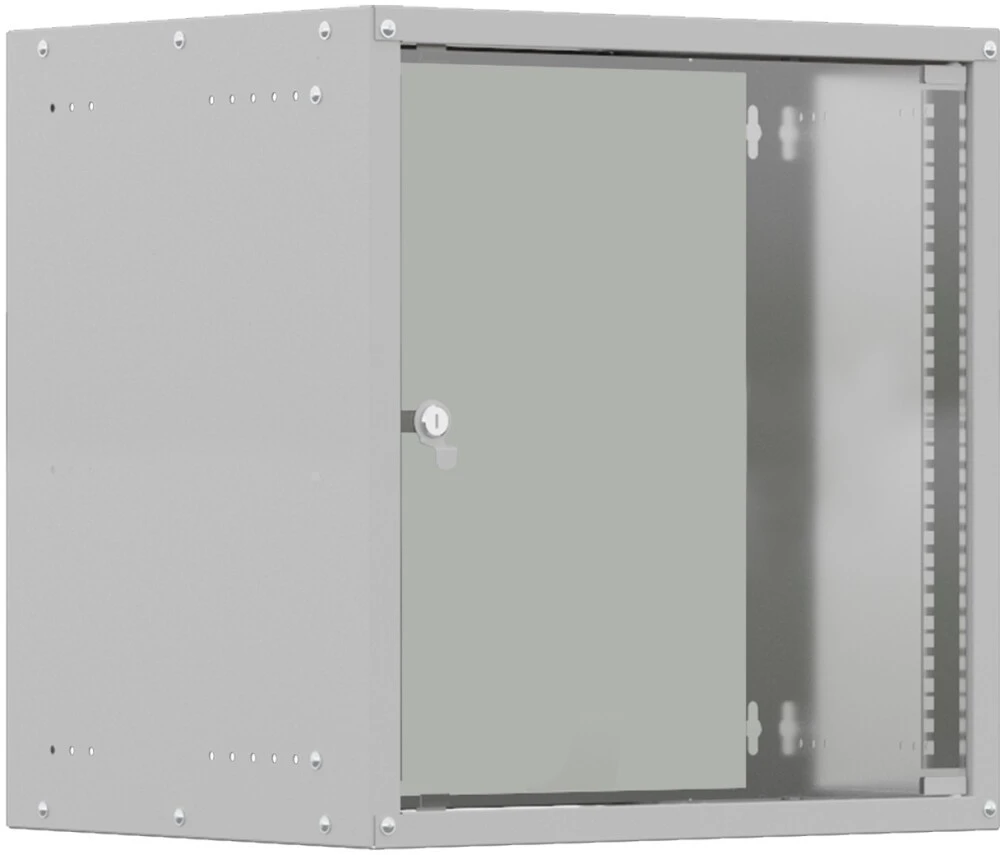 Шкаф телекоммуникационный настенный NTSS серии «Lime» является универсальной сборно-разборной конструкцией, предназначенной для установки телекоммуникационного, электротехнического, кроссового и иного оборудования стандарта 19 дюймов (19”), в соответствии с ГОСТ 28601.2(МЭК 297-2). Шкаф представляет собой разборную конструкцию, состоящую из двух стенок, крыши, основания и передней двери. Боковые стенки не съемные. Оборудование располагается на вертикальных направляющих. Поставляются в удобном для транспортировки гофрокартонном ящике FLAT PACK (одно место). Наличие стальной глухой двери добавляет дополнительную механическую защиту и ограничивает осмотр содержимого шкафа. 12U высоты 19” профилей, может сделать размещение оборудование для рабочей группы весьма комфортным, разумеется, исключая профессиональное серверное и другое глубокое и тяжелое оборудование. Глубина 450мм подходит для небольших коммутаторов, кроссов, но не даст установить оборудование глубже 400мм, максимально раздвинув 19” профили на глубину 365мм.