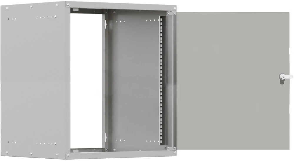 - Собираемый корпус выполняет роль несущего элемента, в котором установлена дверь и 19” направляющие.