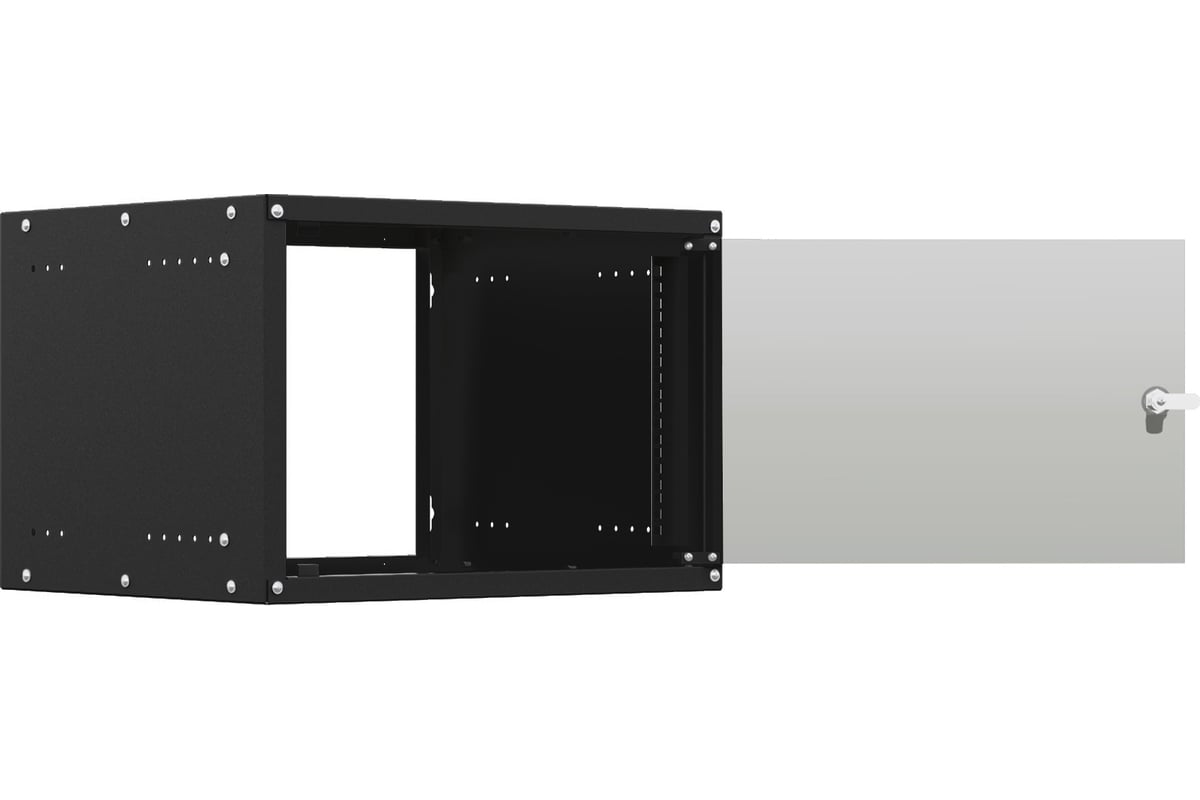 - Собираемый корпус выполняет роль несущего элемента, в котором установлена дверь и 19” направляющие.