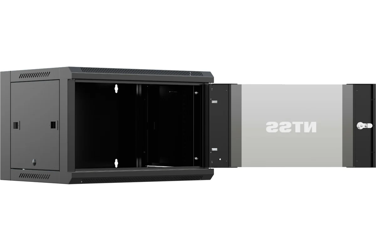 Легко собирающиеся настенный шкаф NTSS серии «W» с передней дверью, открываемыми боковыми стенками на защелках, задней стенкой и панелями пола и потолка. В комплекте 1 пара 19” профилей, уголки для поддержки оборудования. Наличие стальной глухой двери добавляет дополнительную механическую защиту и ограничивает осмотр содержимого шкафа. Высота 12U обычно применяется для шкафов, обслуживающих небольшую группу пользователей и достаточна для размещения коммутационного и активного оборудования. Глубина 450мм подходит для небольших коммутаторов, кроссов, но не даст установить оборудование глубже 400мм, максимально раздвинув 19” профили на глубину 365мм.