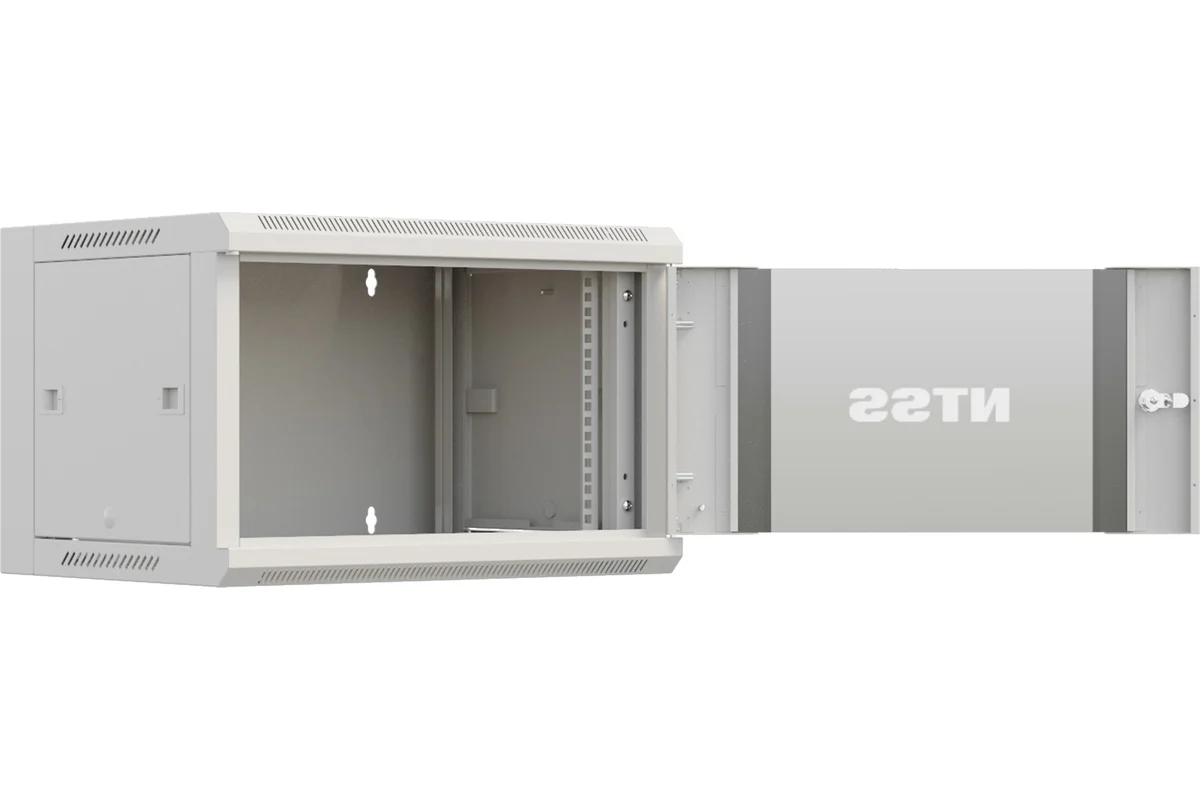 Разобранный настенный шкаф NTSS серии «W» с передней дверью, открываемыми боковыми стенками на защелках, задней стенкой и панелями пола и потолка. В комплекте 1 пара 19” профилей, уголки для поддержки оборудования. Дверь со стеклянной вставкой тонированного стекла делает шкаф более привлекательным. 18U – максимальная размер для шкафов серии W, может сделать размещение оборудование для рабочей группы весьма комфортным, разумеется, исключая профессиональное серверное и другое глубокое и тяжелое оборудование. Настенные шкафы такой высоты чаще рассматриваются как альтернатива небольшим напольным решениям в случае невозможности выделения пространства пола помещения для них. Глубина 600мм подходит для большинства задач, решаемых настенными шкафами для простого размещения коммутаторов, кроссов, но и небольших ИБП и другого активного оборудования.