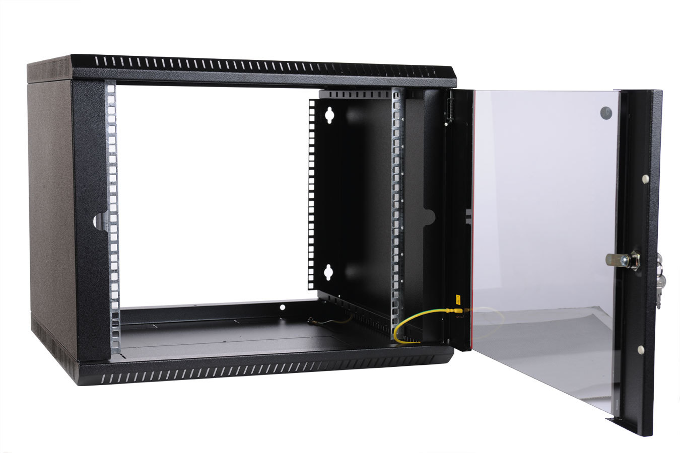 Шкаф телекоммуникационный ЦМО (ШРН-Э-9.500-9005) разборный 9U (600х520) дверь стекло, цвет черный