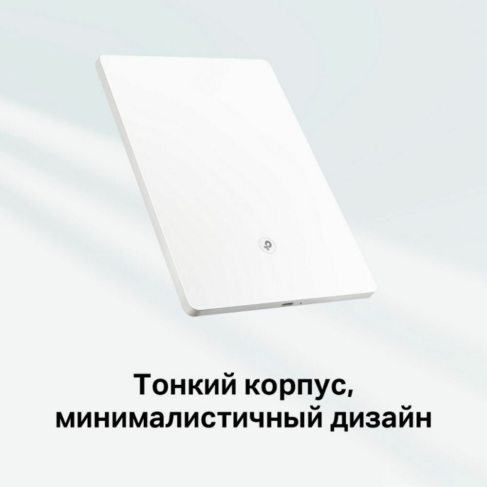 Тонкий корпус, минималистичный дизайн — размер устройства составляет 210 × 148 × 8 мм, при этом толщина корпуса меньше, чем у большинства настенных розеток.