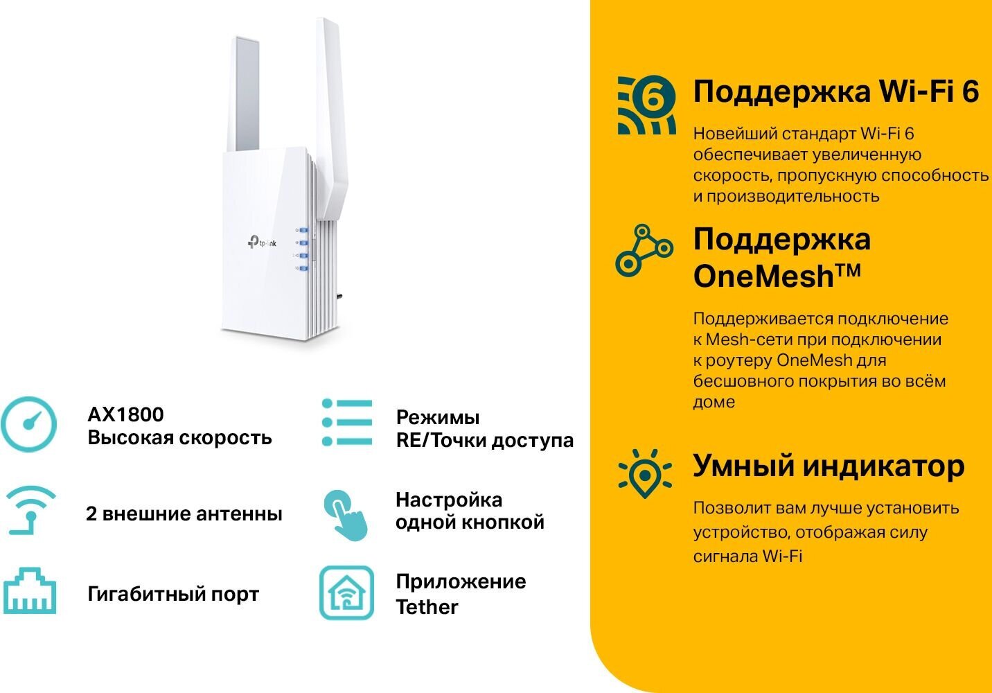 В RE605X используется новейший Wi?Fi 6, обеспечивающий увеличенную скорость и покрытие. Новое поколение Wi?Fi позволяет устранить задержки, бесконечные загрузки и зоны со слабым сигналом, а также позволит выполнять даже самые требовательные задачи, будь то облачный гейминг или просмотр видео 4K UHD.