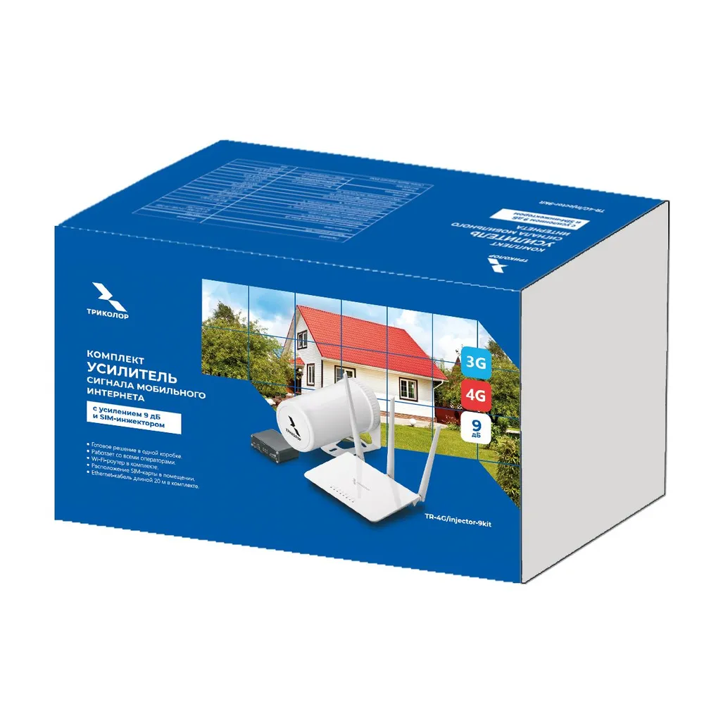Усилитель интернет-сигнала Триколор TR-4G/injector-9kit предназначен для использования в загородных домах и дачах с целью повышения качества сигнала мобильного интернета. Данное устройство обладает поддержкой стандартов 3G и 4G. Усилитель обладает корпусом компактного размера и антеннами для повышения стабильности соединения. Внешний приемник сигнала размещается на спутниковой антенне снаружи помещения и благодаря защищенному исполнению устойчив к различным неблагоприятным воздействиям. В комплекте Триколор TR-4G также поставляются SIM-инжектор и кабель синхронизации с увеличенной длиной 20 метров.