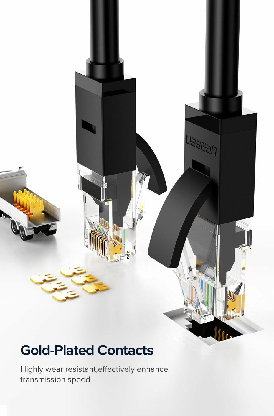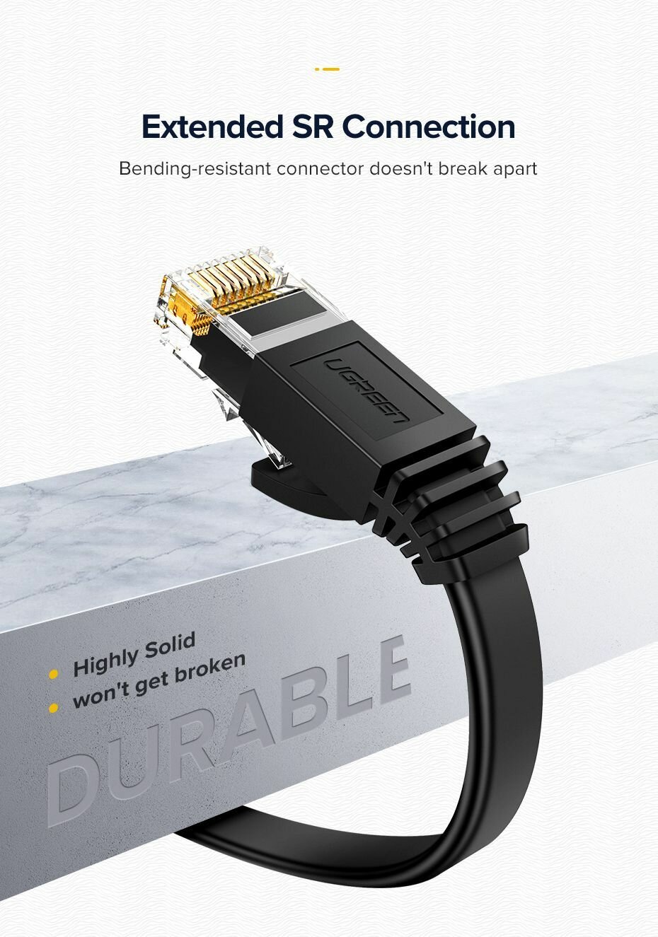 Кабель UGREEN NW102 оснащен двумя коннекторами RJ45. Он способен передавать данные со скоростью до 10 Гбит/с и имеет пропускную способность 500 МГц. Он предназначен для сетевого оборудования, для компьютера. Продукт совместим со всеми устройствами, использующими штекер RJ45. Специальная конструкция разъемов кабеля защищает их от повреждений при многократном использовании.