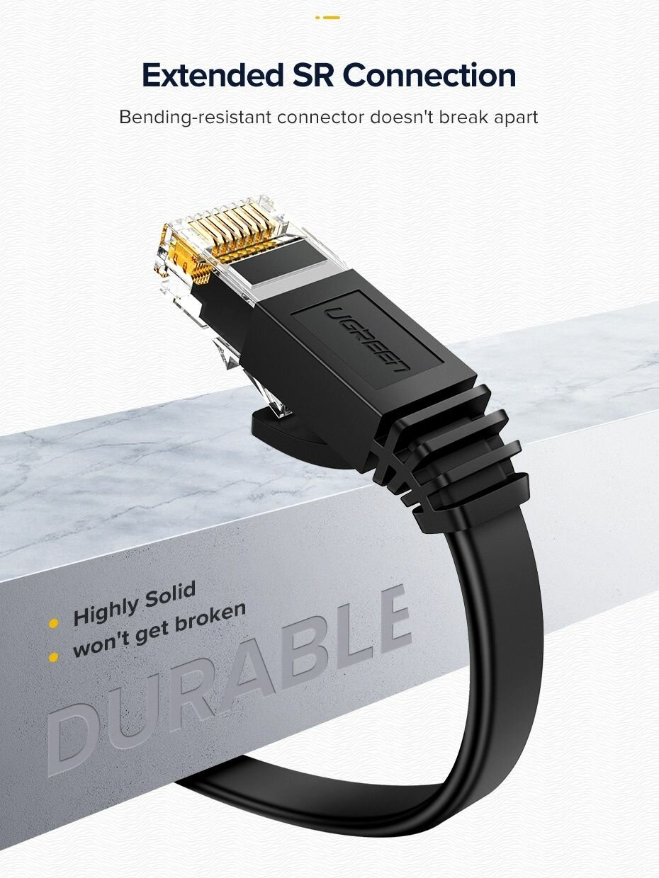 Кабель сетевой UGREEN NW102 (50172) Cat 6 8-Core U/UTP Flat Ethernet Cable 0.5m Black