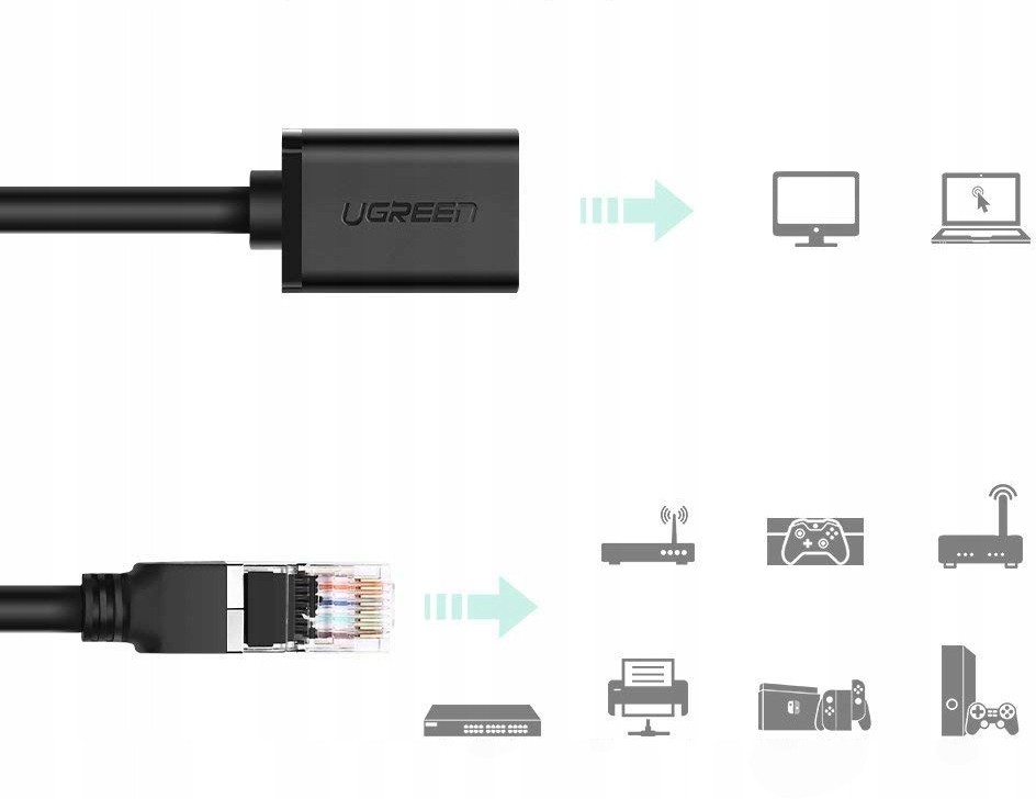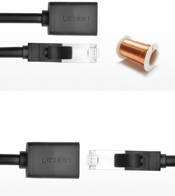 Кабель UGREEN NW112-11278 Сетевой CAT 6, RJ45 (M) to RJ45 (F), бескислородная медь 26AWG, 8-жильный, скорость до 1Гбит/с, силиконовый, 0.5м, Black