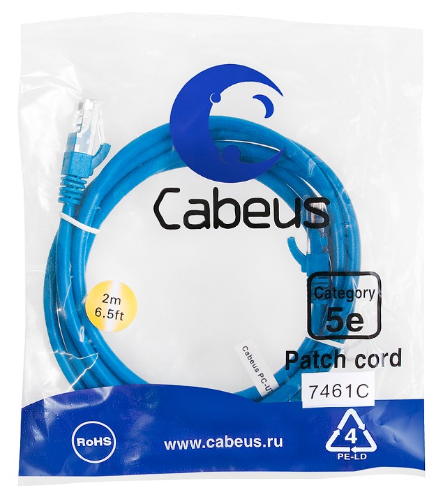Патч-корд Cabeus PC-UTP-RJ45-Cat.5e-2m-BL неэкранированный, синий