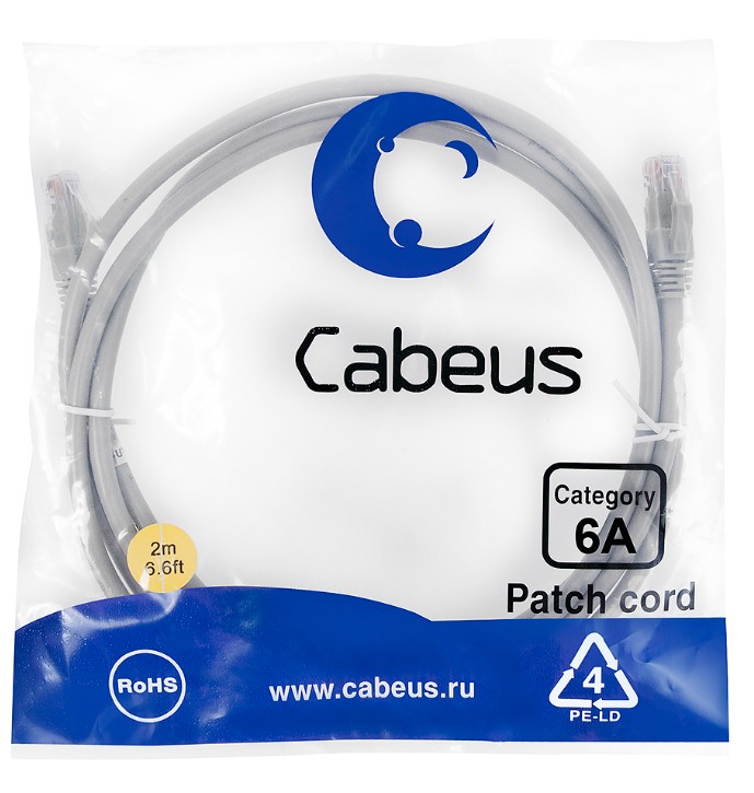 Патч-корд Cabeus PC-UTP-RJ45-Cat.6a-2m-LSZH 10G, неэкранированный, серый