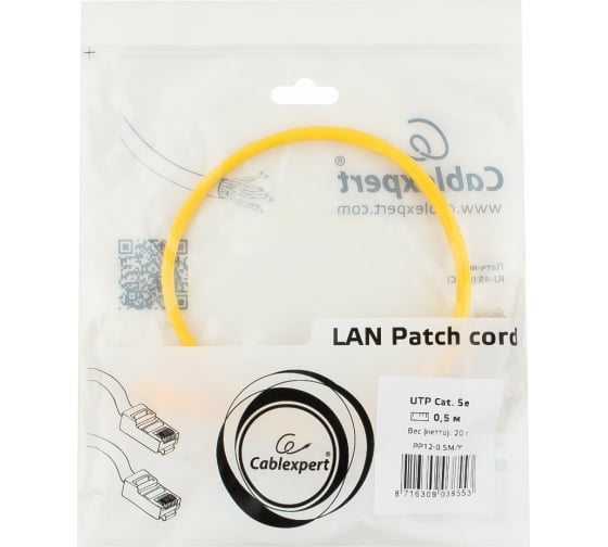 Технические характеристики Cablexpert UTP PP12-0.5M/Y кат. 5e, 0.5 м, жёлтый