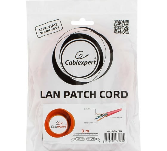 Технические характеристики Cablexpert UTP PP12-3M/RO кат. 5e, 3 м, розовый