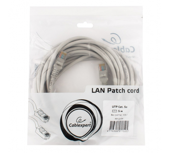 Патч-корд CABLEXPERT PP12-5M/R UTP5e, 5 м, литой, многожильный, биметалл CCA, 26AWG, PVC, красный