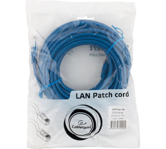 Технические характеристики Cablexpert UTP PP12-7.5M/B кат. 5e, 7.5 м, синий