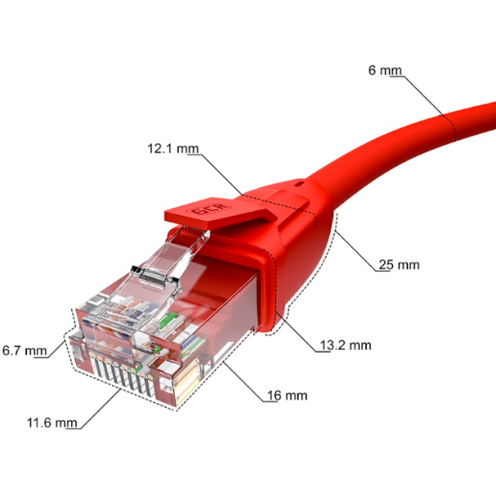 Внешняя оболочка кабеля изготовлена из экологически чистого PVC, соответствующего европейскому стандарту производства RoHS. Омедненный проводник обеспечивает стабильное подключение на высокой скорости. LAN кабель прошел тестирование на прочность и отвечает современным стандартам качества.