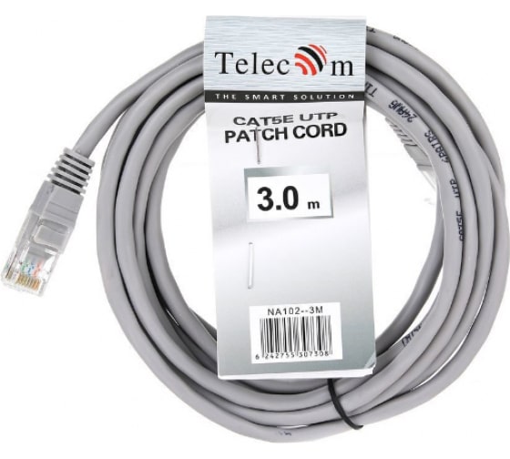 Патчкорд Telecom NA102--3M литой UTP кат.5е 3,0м серый