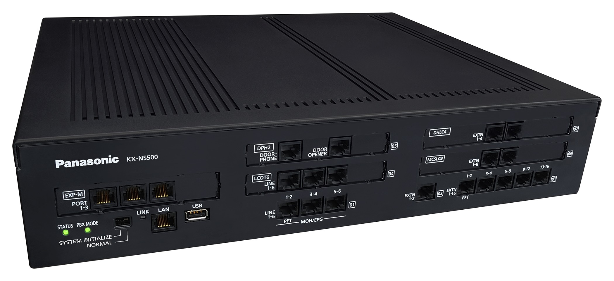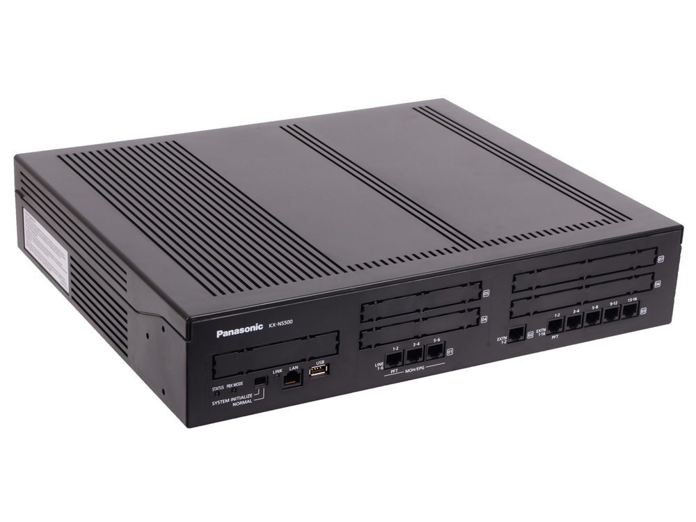 Цифровая IP АТС Panasonic KX-NS500 в начальной конфигурации 6 городских аналоговых линии и 18 внутренних абонента (16 аналоговых и 2 системных).