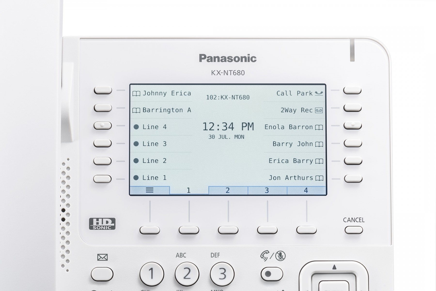 • 48 программируемые кнопки c ЖК-индикаторами линии/функции (4 страницы по 12 кнопок);
