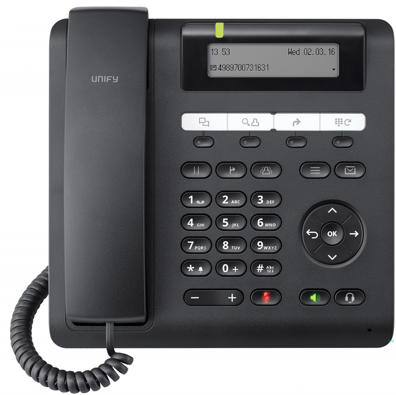 Настольный телефон UNIFY OpenScape Desk Phone CP200T - это телефон для входа в семейство телефонов CP-TDM. Он поддерживает мощный набор функций систем связи OpenScape TDM, предлагает 4 программируемые функциональные клавиши со светодиодной (зеленой) сигнализацией. Эти клавиши предварительно назначаются со списком вызовов, контактами, переадресацией, повторным набором номера. Кроме того, телефон имеет 5 фиксированных функциональных клавиш, 3 со светодиодами (красный или зеленый). Эти клавиши предварительно назначаются с удержанием, передачей, конференцией, настройками, сообщениями. Настольный телефон OpenScape CP200T использует стандартный набор настенного крепления, который уже был представлен с настольным телефоном OpenScape CP200. Акцент на базовых функциях и USB-интерфейсе делает OpenScape Desk Phone CP200T идеальным компаньоном для рабочих мест с поддержкой CTI.