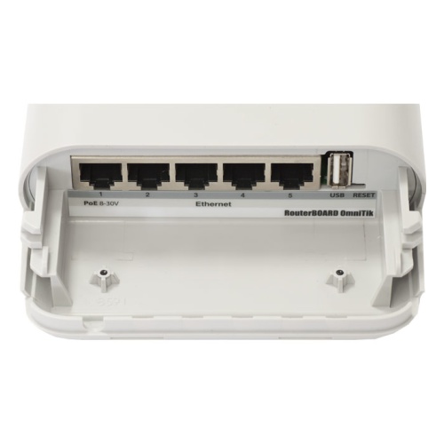Он имеет пять портов 10/100 Ethernet, поддерживает PoE и имеет встроенный 400мВт 802.11a/n радио модуль. Также поддерживает технологию TDMA NV2 до 200Mbit совокупной пропускной способности. Светодиодные индикаторы на корпусе полностью надстраиваемые. Они показывают состояние Ethernet или беспроводного сигнала, а так же любую другую информации из RouterOS. USB-порт дает возможность подключения 3G модема или накопителей.