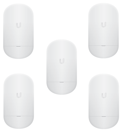 Комплект из 5 компактных абонентских устройств airMAX NanoStation 5AC Loco в диапазоне 5 ГГц, полностью готовых для развёртывания клиентской сети провайдера Интернета и передачи данных на скорости более 450 Мбит/с на расстояния до 10 км и более.