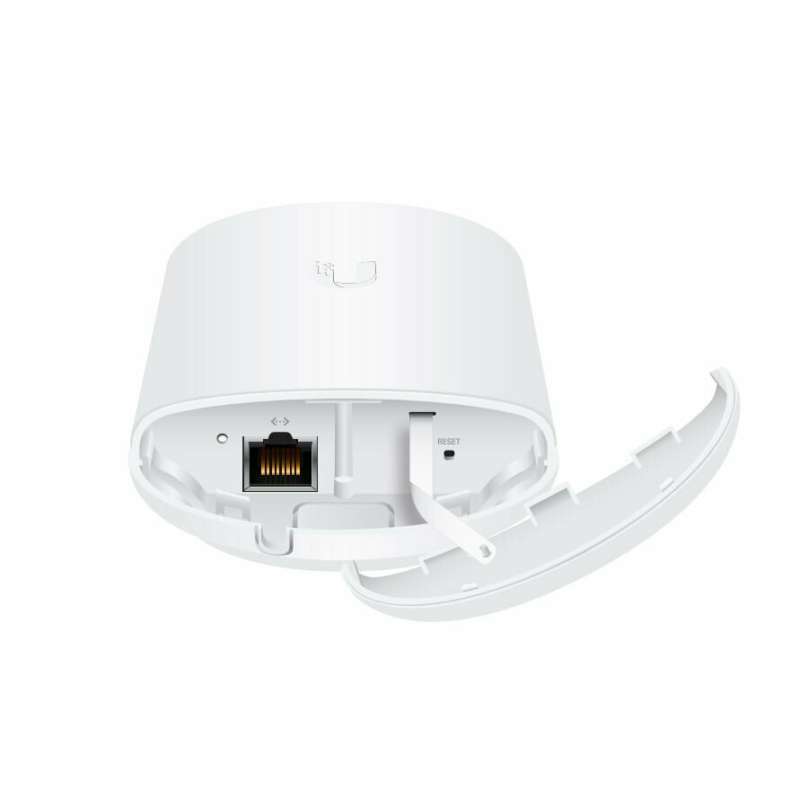 К сети радиомост подключается 1 гигабитным портом. Питание подается на этот же порт в пассивном режиме PoE (адаптер в комплекте).