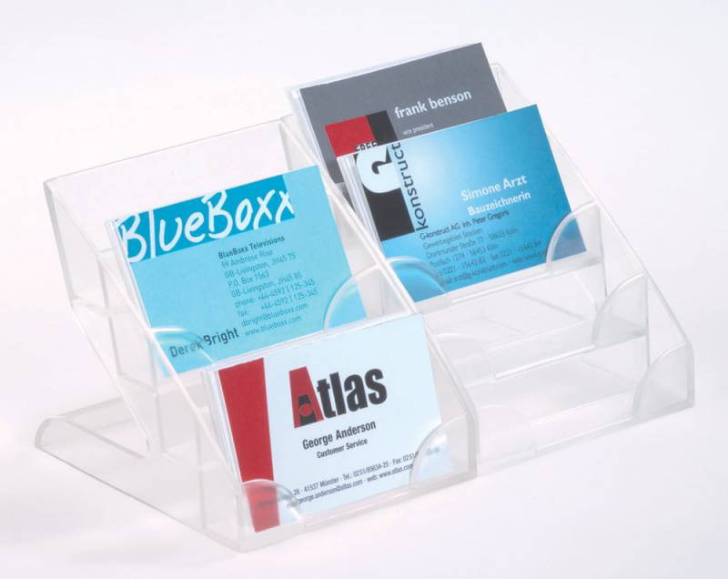 Описание: Прозрачный диспенсер для визиток, 4-ех ярусный, для 240 визитных карточек. Несколько диспенсеров могут фиксироваться друг с другом.