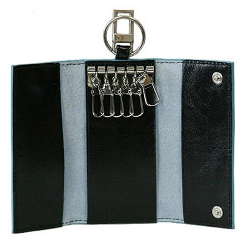 Описание: Ключница на 6 ключей натуральная кожа.Оторочка по канту - голубым. Внешнее кольцо и карабин - для крепления к поясу, шнурку, дополнительных крупных ключей или др. Фирменная упаковка.