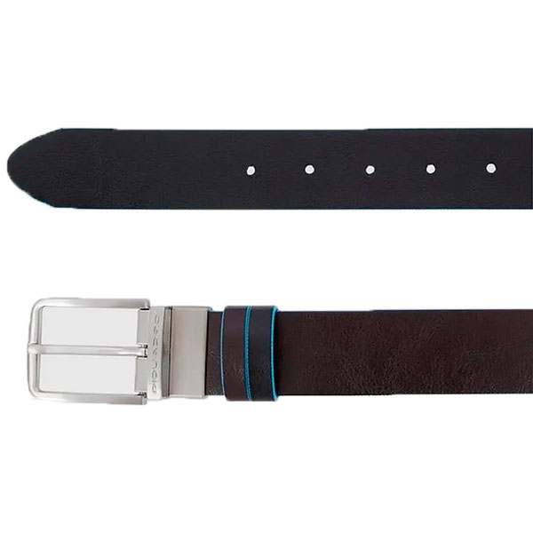 Двусторонний ремень Piquadro Blue Square, сочетающий два классических цвета, красно-коричневый и черный. Хромированная пряжка и бирюзовая окантовка выгодно подчеркнут оригинальный выбор. Прекрасный подарок для друзей и близких.