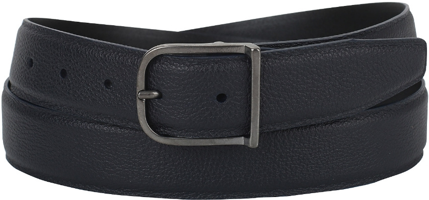 Гармоничное дополнение к повседневному или деловому костюму — классический темно-синий ремень из зернистой натуральной кожи. Аксессуар дополняет скругленная открытая пряжка из темного металла. Ремень упаковывается в стильную фирменную коробочку и отлично подойдет в качестве подарка.