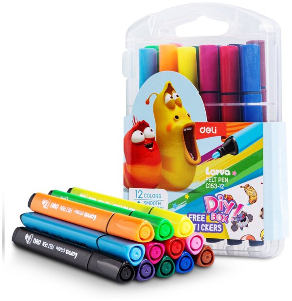 Фломастеры набор Deli Larva вентилируемый 12цв. Европодвес, EC153-12