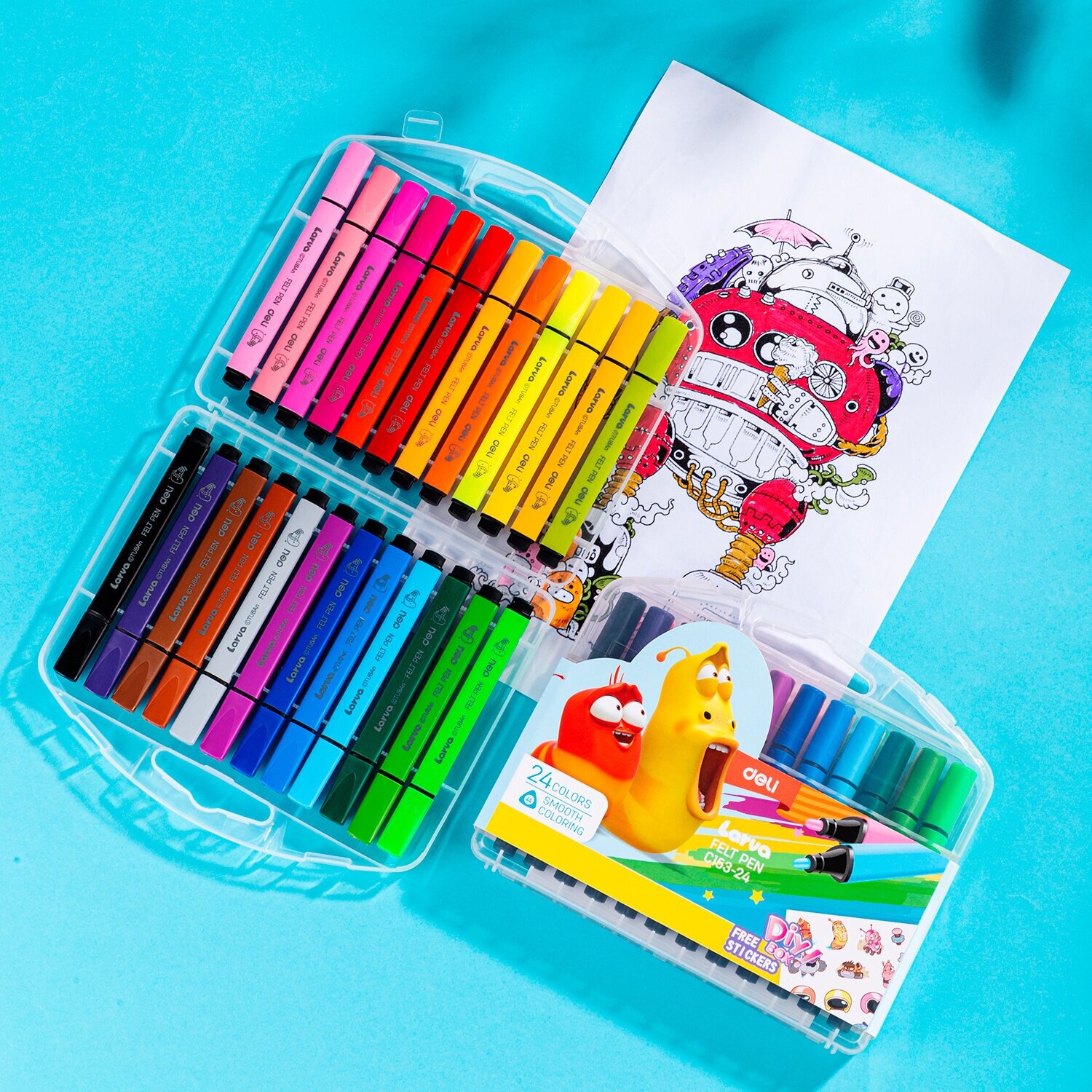 Фломастеры Deli EC153-24 Larva Вентилируемый 24цв.