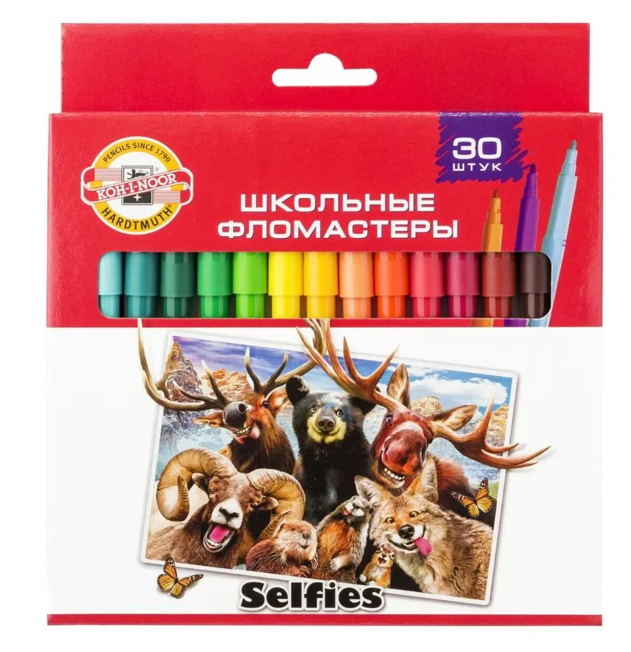 Набор фломастеров Koh-I-Noor Selfies 1002 771002CJ22KS колпачок вентилируемый, 30 цветов, коробка с европодвесом