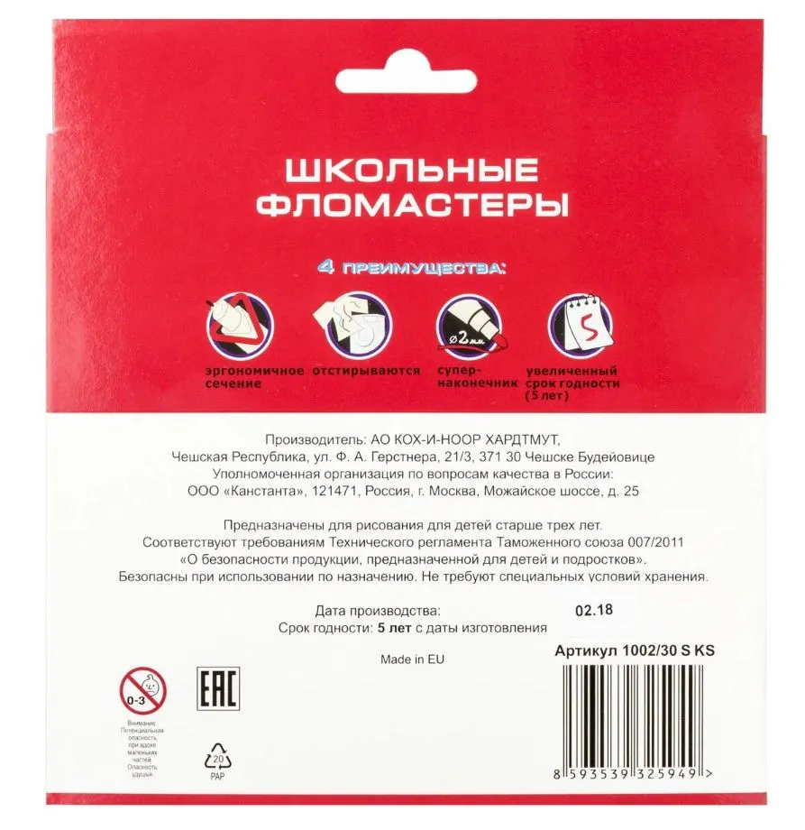 Фломастеры изготовлены из прочного и экологически чистого пластика, имеют трехгранный корпус в зоне захвата.