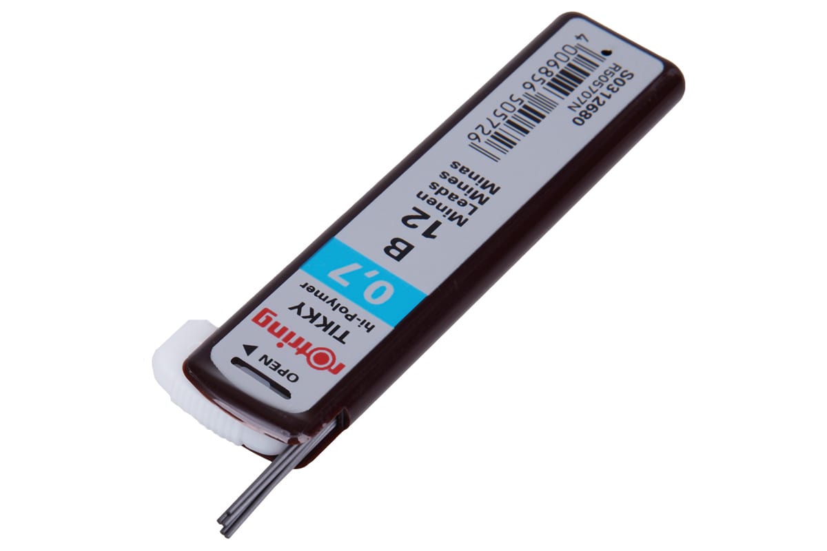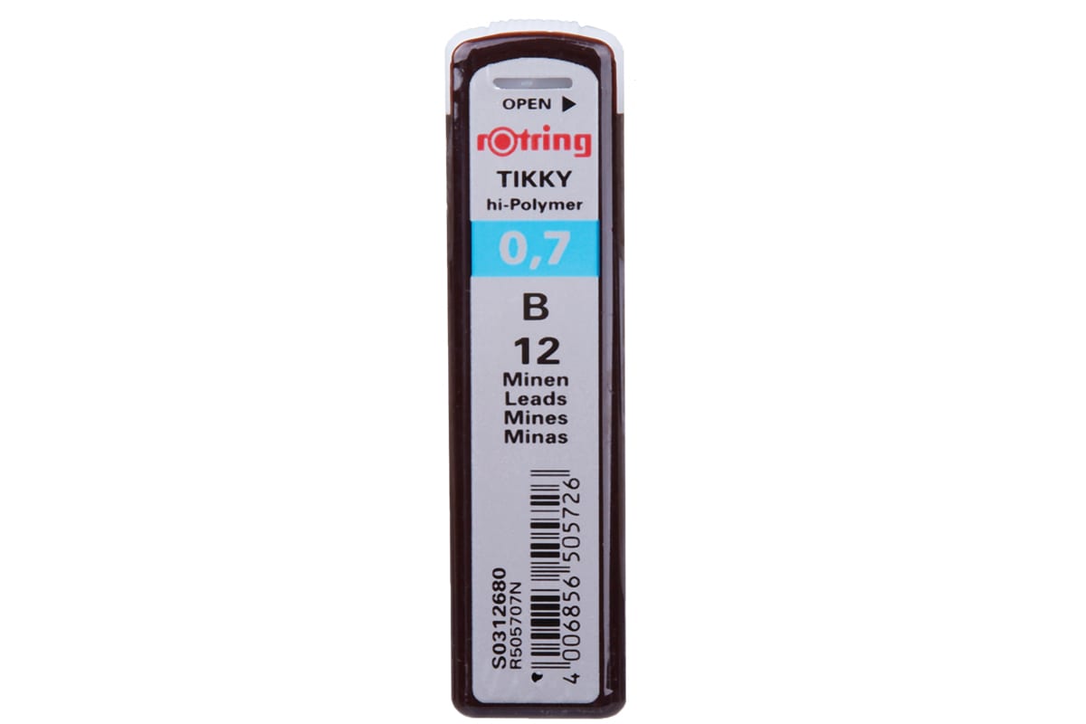 Грифели для механических карандашей Rotring Tikky 12 шт, 0,7 мм B S0312680 предназначены для чертежных работ.