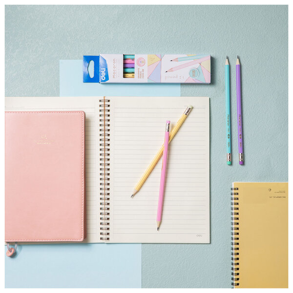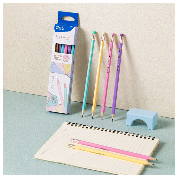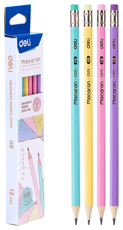 Карандаш ч/г Deli Macaron EC025-HB 2.4мм HB шестигранный липа коробка/европод. 12шт ластик