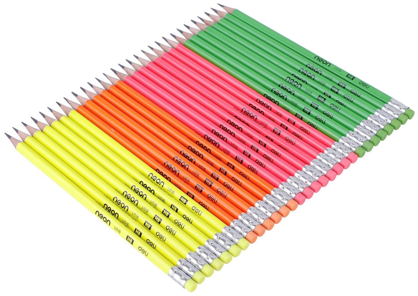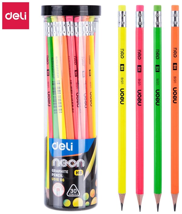 Карандаш ч/г Deli Neon EU51606-1 HB ассорти туба пл. 1шт ластик