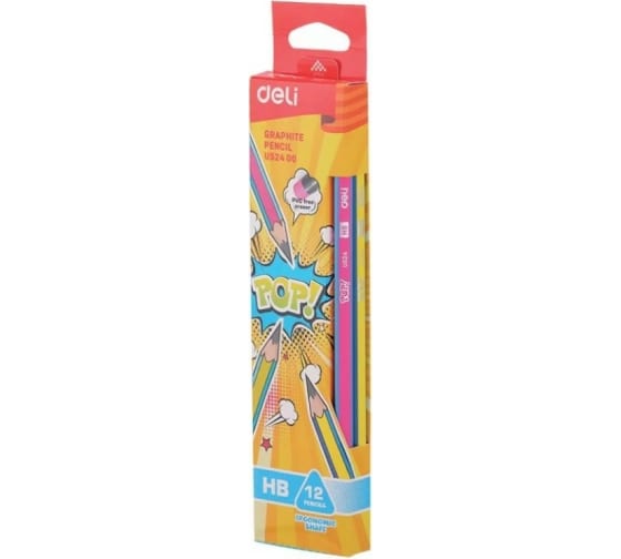 Чернографитный карандаш DELI POP EU52400 HB шестигранный тополь коробка европодвес 12 шт ластик, 12 упак 1049398 предназначен для чертежных работ.