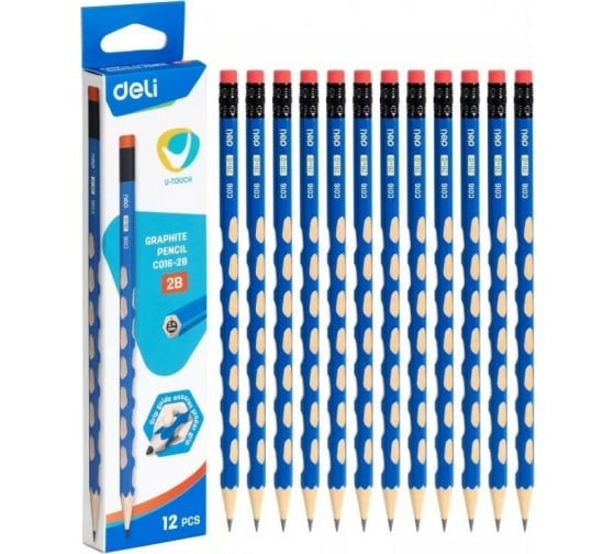 Чернографитный карандаш DELI U-Touch EC016-2B 2B трехгранный 12 шт ластик, 6 упак 1656490 предназначен для чертежных работ.