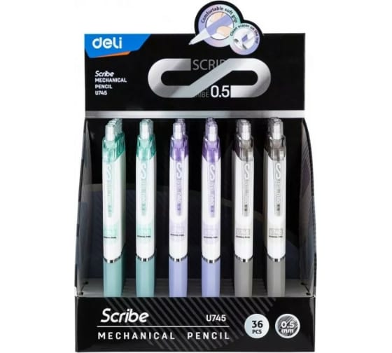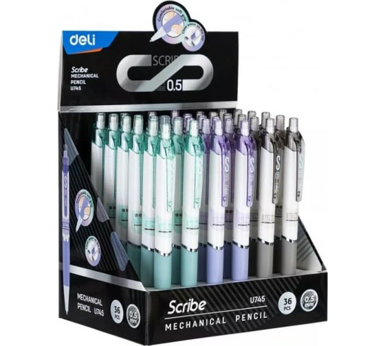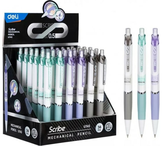 Механический карандаш DELI EU745 0.5 мм пластик, 36 шт 1656466 предназначен для чертежных работ.