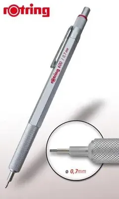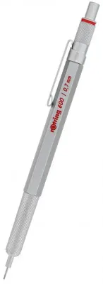 Rotring 600 Культовый механический карандаш с шестиугольным серебристым корпусом и текстурной металлической зоной захвата. Латунный механизм подачи грифеля обеспечивает идеальную точность.Металлический наконечник не позволяет стержню ломаться и способствует черчению по линейке.