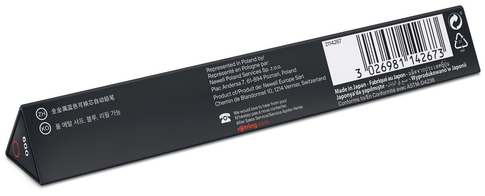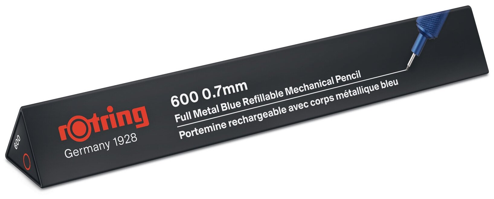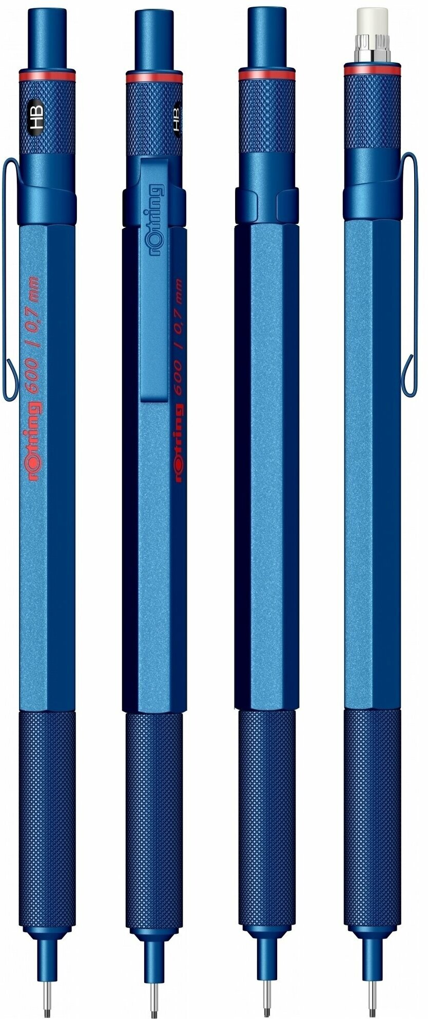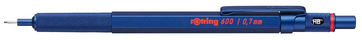 Карандаш механический Rotring 600 2114267, корпус сталь, цвет синий, диаметр 0.7 мм.