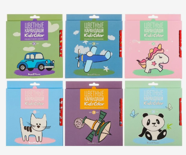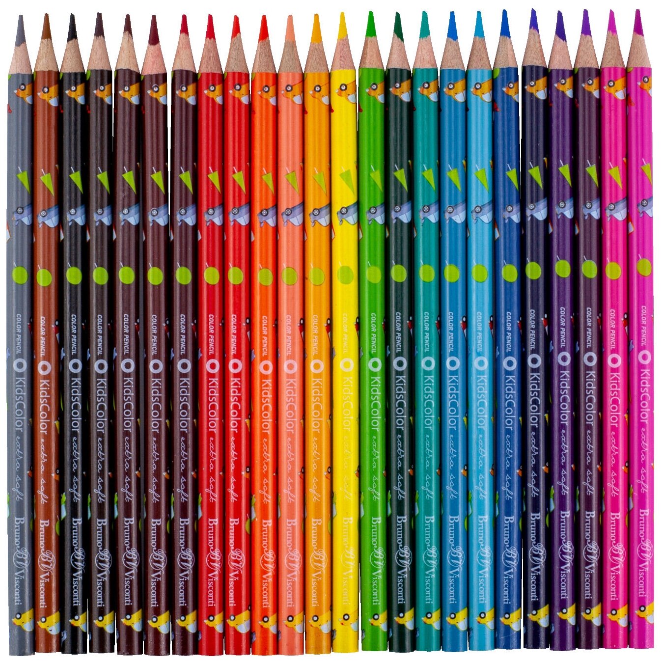 Яркие цвета, мягко рисуют и удивительно красивы – это все то, что отличает карандаши.«Kids Color» ТМ Bruno Visconti! Почему карандаши легко скользят по поверхности бумаги, не царапая ее, оставляя насыщенный след? Все просто! «Kids Color» обладатели высококачественных, безопасных цветных пигментов, содержание которых в составе грифеля увеличено.Сам грифель отцентрован и проклеен дисперсионным клеем - не крошится, не ломается, устойчив к деформации. А еще он имеет увеличенный диаметр, что продлевает срок службы карандашей.Корпус изготовлен из термообработанной липы, способной сохранять свои технические свойства на протяжении долгого времени и надежно удерживать грифель. Дополнительно карандаши защищены лаком, нанесенным в несколько слоев. Лак абсолютно безопасен, т.к. произведен на водной основе. Ну, а дизайн карандашей отдельно достоин внимания! Это целые истории на различные темы, детально прорисованные на корпусе карандашей художниками Bruno Visconti.Цветные карандаши «Kids Color» от Bruno Visconti - качество, безопасность и позитивное настроение, все то, что необходимо юному художнику для создания маленького шедевра!Набор упакован в картонную упаковку с бархатистым покрытием Soft Touch. Ну все продуманно до мелочей!