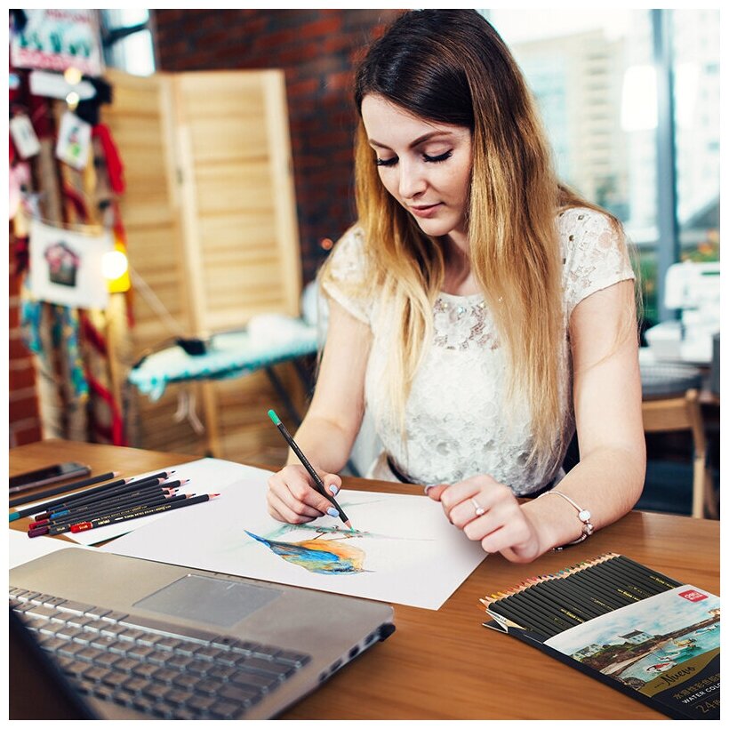Эти профессиональные акварельные карандаши в картонной коробке с кистью являются отличным выбором для художников и любителей искусства, которые хотят создавать яркие и выразительные работы с использованием акварельной техники.
