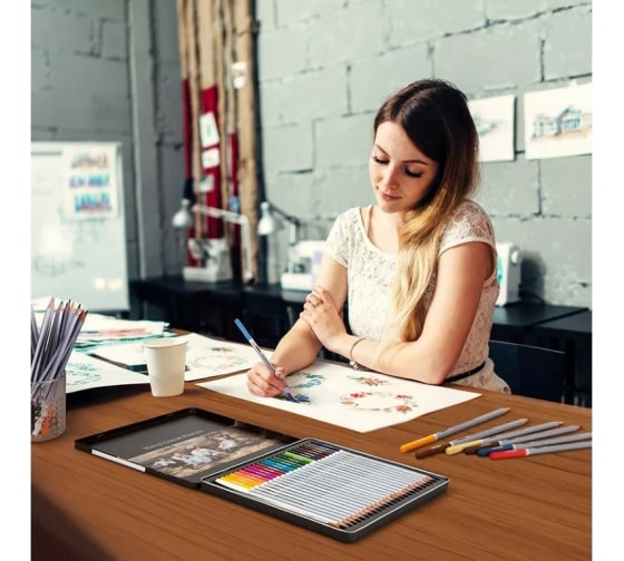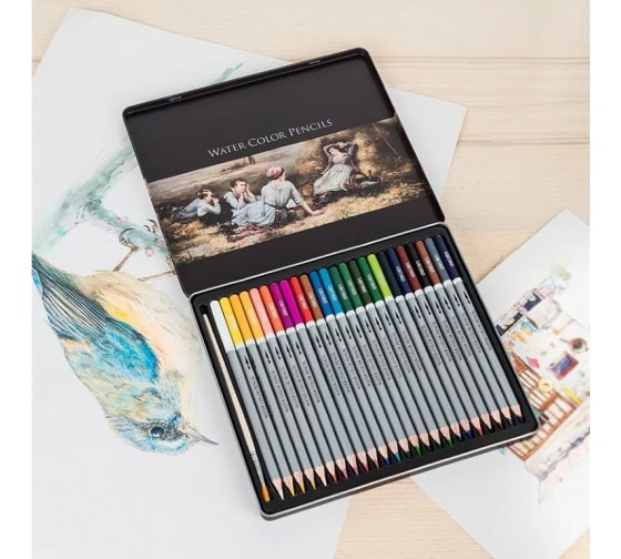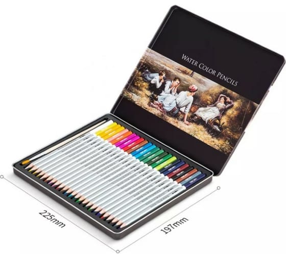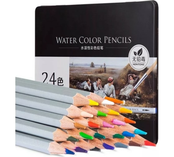 Цветные карандаши DELI Nuevo 6521 акварельные липа серебристый 24 цвета металлическая коробка 1205239 предназначены для творчества и хобби.