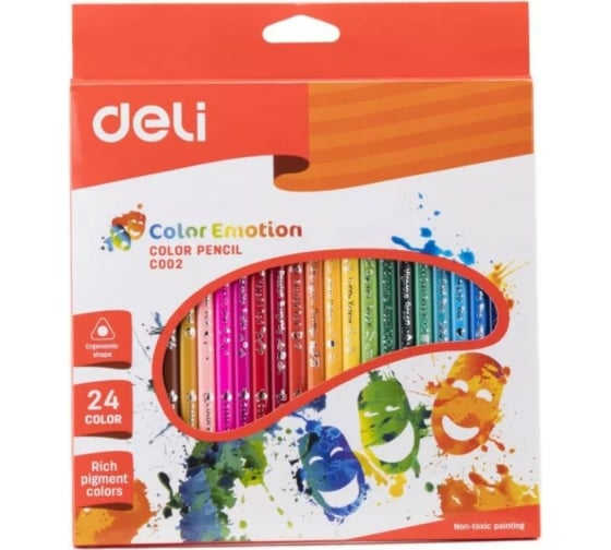 Цветные карандаши DELI Color Emotion EC00220 трехгранные липа 24 цвета коробка/европодвес, 12 упак 458045 предназначены для творчества и хобби.