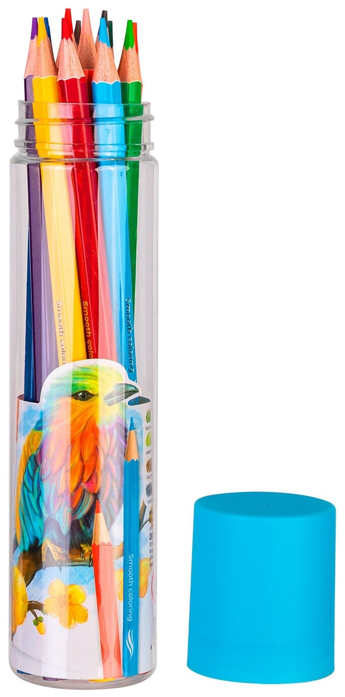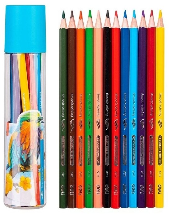Карандаши цветные Deli EC111-12 Color Emotion, корпус шестигранный, липа, пластиковый тубус 12 шт, 12 цветов, упаковка 24 шт.