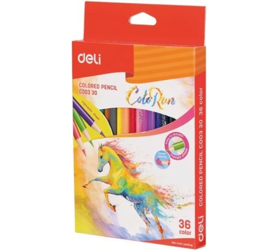 Цветные карандаши DELI EC00330 ColoRun трехгранные тополь 36 цветов коробка/европодвес 36 шт, 12 упак 1048955 предназначены для творчества и хобби.