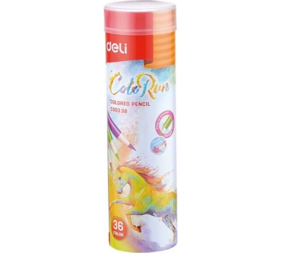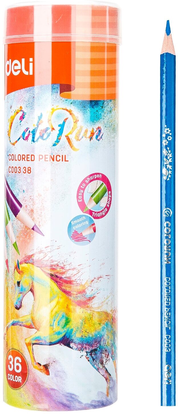 Цветные карандаши DELI EC00338 ColoRun трехгранные тополь 36 цветов металлический тубус 36 шт, 12 упак 1048961 предназначены для творчества и хобби.